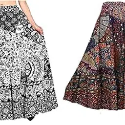 Jaipur Export qulity Cotton Hand Block Floral Printed Wrap Around Women’s and Girls Free Size Skirt Rapron Multi israly
