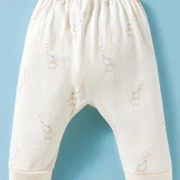 Zero Sinker Knit Full Sleeves Co-ords Night Suit With Animal Print - Cream
