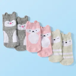 Cute Walk by Babyhug Knit Ankle Length Antibacterial Anti Skid Socks with Animal Design Pack of 3 - Multicolor