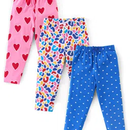 Babyhug Cotton Lycra Knit Full Length Leggings With Heart & Polka Dot Print Pack of 3 - Blue Dark Pink & Navy Blue