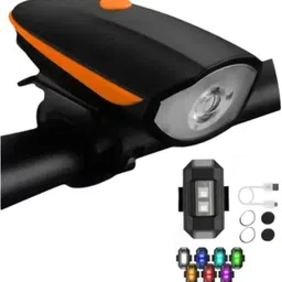 USB Rechargeable Bike Horn & LED Light, Multicolor LED Front Light