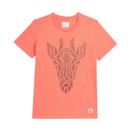 Blue Giraffe Kids Peach & White Cotton Printed T-Shirt