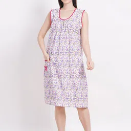 Breezly Floral Printed Sleeveless Pure Cotton Nightdress
