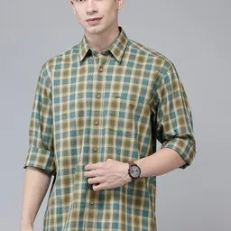ColorPlus Men Green Tailored Fit Tartan Checked Organic Cotton Casual Shirt