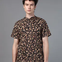 DON VINO Men Comfort Band Collar Floral Printed Cotton Slim Fit Casual Shirt