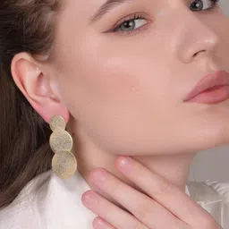 Estele Gold Plated Dual Circular Designer Beaten Gold Earrings