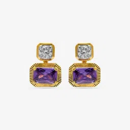 Westside X Pome Amethyst Baguette & Diamond Duo Stud Gold Plated Earrings