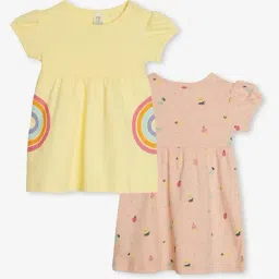 Ed-a-Mamma Infant Girls Yellow & Pink Cotton Printed Clothing Set