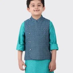 Fabindia Boys Blue Geometric Cotton Kurta And Nehru Jacket Set