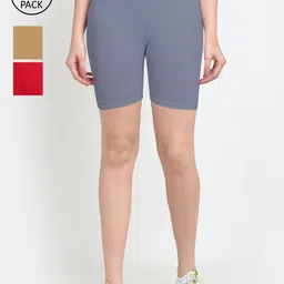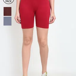 GRACIT Women Pack Of 3 Solid Cycling Shorts