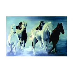 Inephos White & Brown Canvas Birds and Animals Horses Running Vastu Art Wall Painting