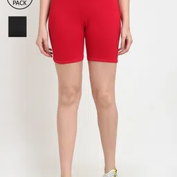Jinfo Women Black & Red Pack Of 2 Cycling Sports Shorts