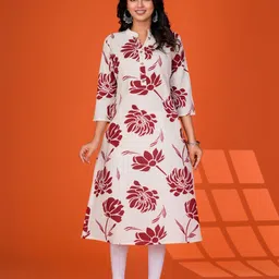 Kaftanize Women Cream Color Bold Floral Printed Tunic