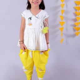 Lil Drama Janmashtami Girls Yellow Cotton Kurta and White Dhoti Ethnic Set