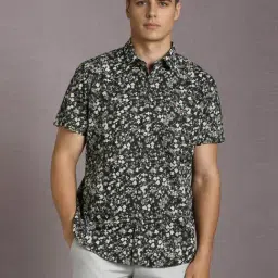 Louis Philippe Black Cotton Slim Fit Printed Shirt