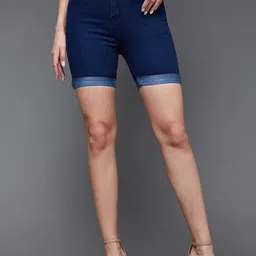 Miss Chase Women Skinny Fit High Rise Cotton Denim Shorts