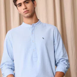 Mr Bowerbird Pure Cotton Band Collar Liberal Fit Casual Shirt