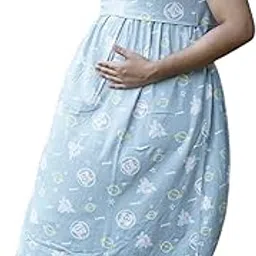 Women’s Cotton Maternity Feeding Nighty | Zipless Long Maxi | Soft Knitted Fabric | Back Rope & Side Pocket | Comfortable Feeding Wear for Pregnant & Nursing Moms