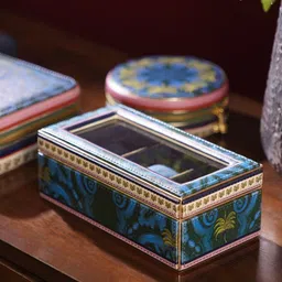 Pure Home and Living Blue & Green Palmas Printed Watch Box