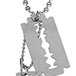 Stylish Razor Double Silver Blade Beveled Silver Stainless Steel Necklace Chain for Men and Women SilverShivBLR58