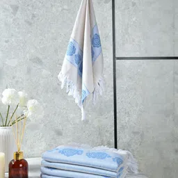 Saral Home Blue & White 4 Piece Printed Cotton 400 GSM Towel Set