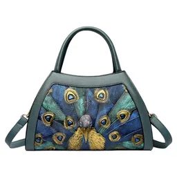 SYGA Women Elegant Peacock Embossed Shell Handbag Stylish Shoulder Purse with Artistic Detailing(Blue)