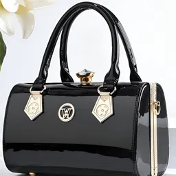 SYGA Women Elegant Glossy Handbag Medium Pillow Bag with Lock Closure (Black)