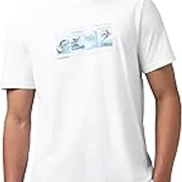 Men Printed Crew Neck Polyester Light Blue, White T-Shirt