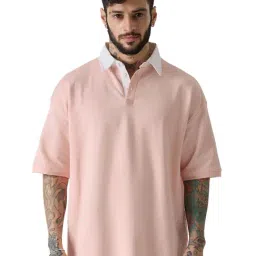 The Souled Store Pink Relaxed Fit Oversized Polo T-Shirt