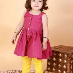 Vastramay Girls Pink Cotton Kurta with Pant