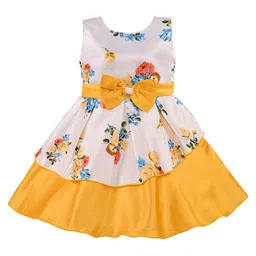 Wish Karo Girls Yellow & White Floral Printed Cotton Dress